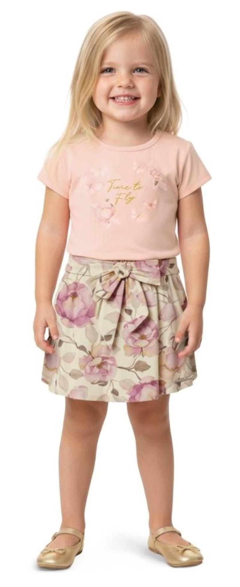 Conjunto Carinhoso Feminino Infantil 1000136250 Blusa/Saia 4 ao 8 44277 K26
