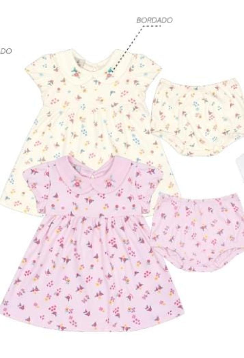 Conjunto Kiko e Kika Feminino Bebê 14561 Vestido Manga Curta/ Cobre Fralda P ao G 43942